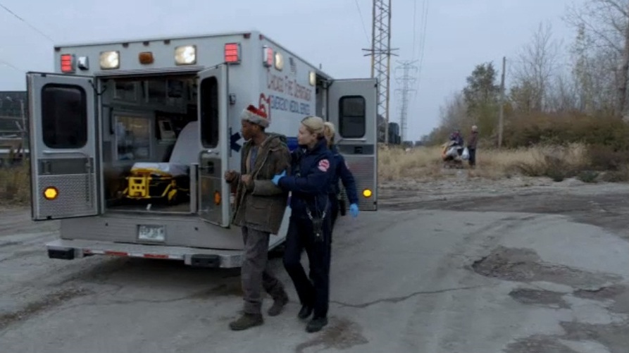 - (0:16) Dawson And Shay Fixing Up A Homeless Man In An Open Field / West Of The W. 15th Street And S. Western Avenue Intersection, Chicago (Note: This Is Hard To Explain Where This Location Is. The Building Seen In The Second Screen Shot Is Called The Midland Building And It Is Located At 1500 S. Western Avenue So The Rig Has To Be Facing Away From It Or Facing West. But In The First Screen Shot You See Power Towers Which Are Running North And South At That Location. The Rig Is Facing North In The First Screen Shot And For Some Reason They Must Have Moved It Between Scenes.