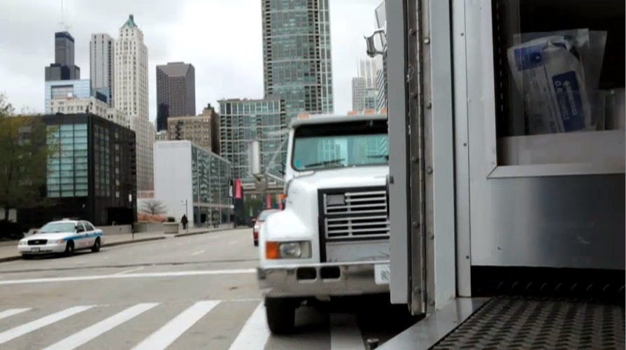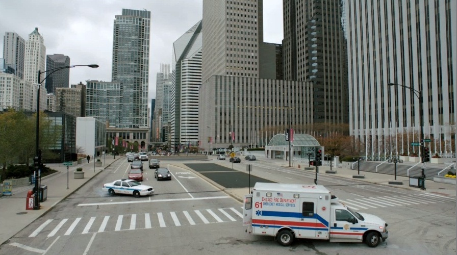- (0:42) A Truck Crashes Into The Ambulance / E. Randolph Street And N. Columbus Drive, Chicago (Note: The Truck Comes From The West On Randolph When It Hits Them)