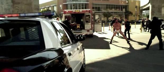 - (0:31) The Man On PCP Jumping From The Ambulance And Onto The Squad Car / Intersection Of Arcadia Street And N. Main Street, Los Angeles (Note: They Were Traveling Northwest On Arcadia)