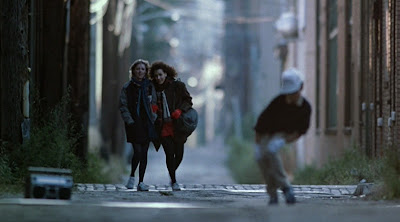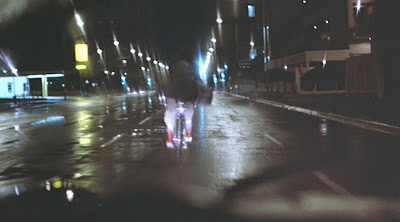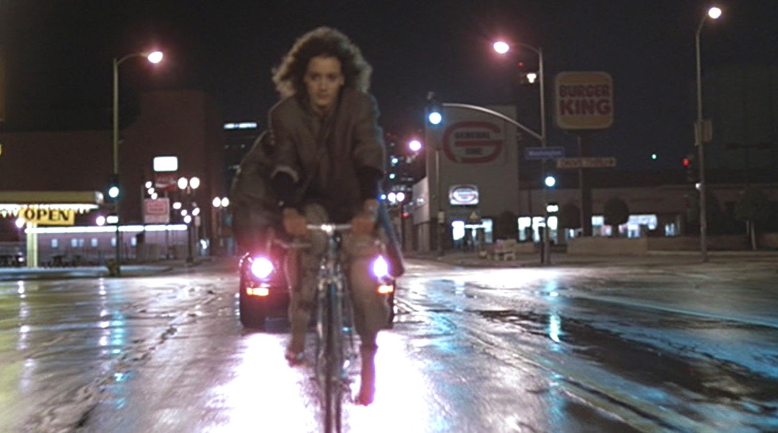 - (0:38) Alex Riding Her Bike Home In The Rain While Being Followed By Nick Hurley / Going Southeast On W. Washington Blvd For One Block Then Turning Right On S. Grand Avenue, Los Angeles (Note: Some Of The Spots She Rides By Remain Today While Others Have Been Torn Down)