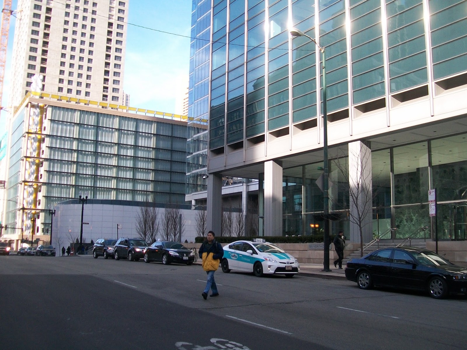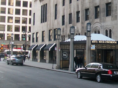 • (0:07)  The Cab Drivers Hanging Out In Front Of A Hotel / Intercontinental Hotel; 505 N. Michigan Avenue, Chicago (Note: They Are Parked On The E. Illinois Street Side Of The Building. Illinois Street Is A One Way Street But Is Going The Opposite Direction In The Movie)