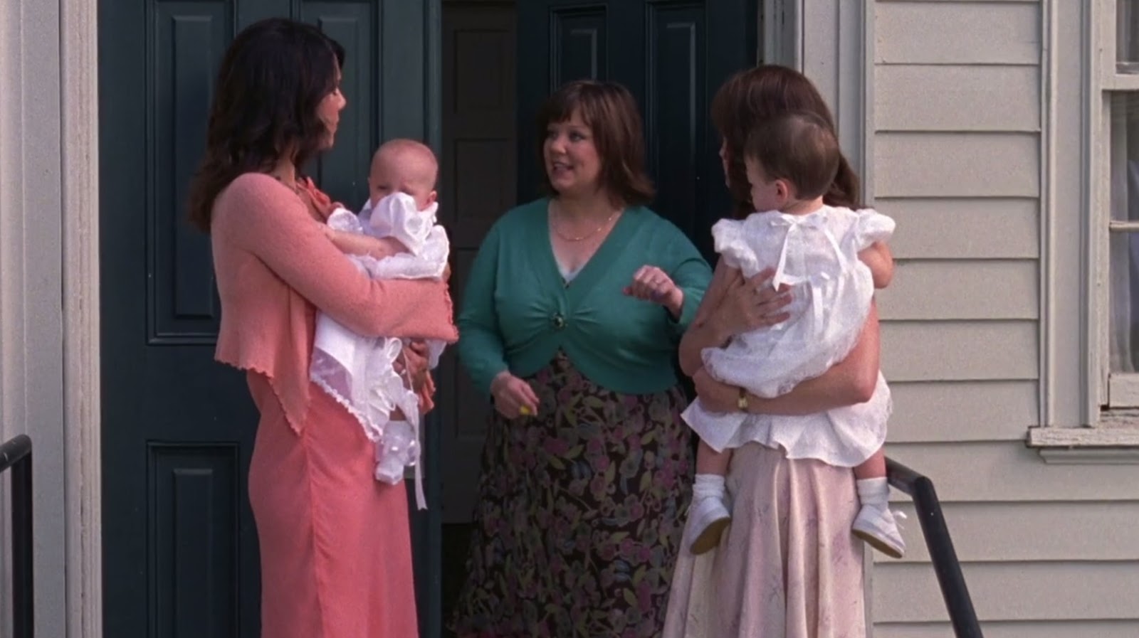 • (0:22)  Lorelai In The Soda Shoppe, With Other Town Residents, Checking Our Luke's New Daughter Through The Window / Warner Bros; Midwest Street, Burbank