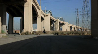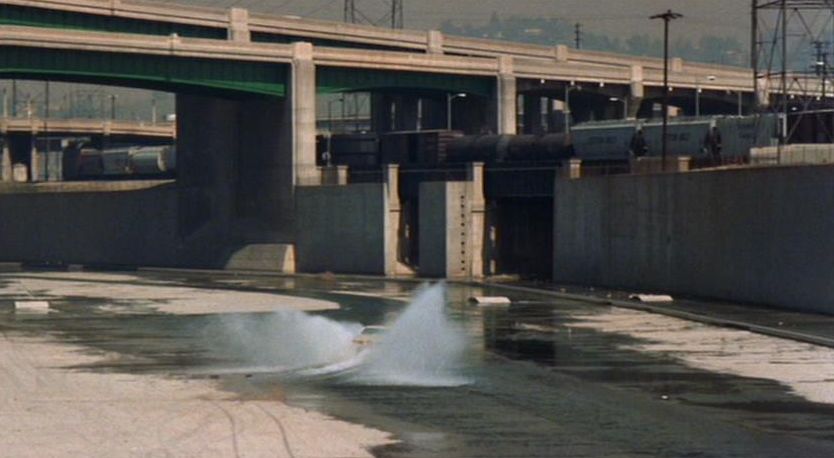 - (1:20) The Chase Sequence / East On 6th Street And Left At Mateo Street, Somehow They Are On Mesquit Street And Turn Sharp Left Under 7th Street And Into The River Bank Of The Los Angeles River, They Follow The River All The Way To Just Short Of The 110 N. Freeway.