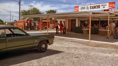 • (0:29)  The Bears Stopping At The El Rancho Drive In And Play A Game Against Some Native Americans / Roughly 251 S. Moon Road, El Paso, Texas (Note: This Is The Spot Where The Baseball Was Played. That Small Cemetery Now Covers Most Of The Field And That White Church Seen In The Background Is Still There)