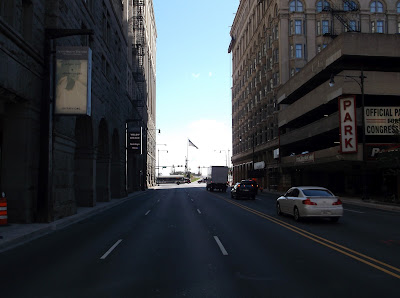 • (0:30)  The Bus Goes Left And The Van Goes Straight / E. Congress Parkway And The Bus Goes On S. Michigan Avenue, Chicago (Note: They Turn South Just Past The Congress Hotel Into An Alley And They Pass E. Harrison Street As You Hear Look Both Ways)